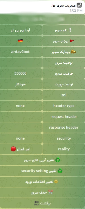 ربات تلگرام آردا وی پی ان تنظیمات بسیار زیاد و پر امکاناتی داره و میتونید موارد زیادی رو در اون کنترل کنید که در ادامه هر کدوم رو توضیح میدیم…