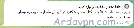 شما میتوانید بهصورت نامحدود کد تخفیف ایجاد کنید و با تنظیم درصد تخفیف یا مقدار مشخصی به تومان، به مشتریان خود این امکان را بدهید که هنگام خرید از ربات تلگرامی، تخفیف دریافت کنند.
